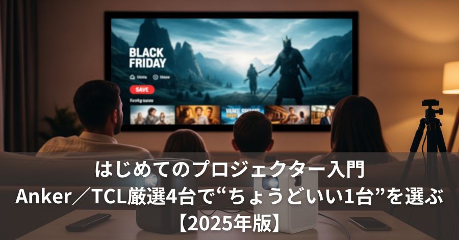 そこでこの記事では、投写距離×スクリーンサイズ×明るさ×用途という4つの軸だけに絞って、初めてのプロジェクターで狙いやすいAnker/TCLの4台を整理します。読み終わるころには、「自分の部屋ならこのタイプだな」と、はじめての1台をサクッと決められるはずです。