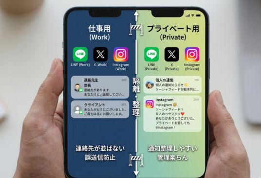 スマホ1台で仕事とプライベートを分けたいのに、LINEやSNSの切り替えが面倒ですよね。
