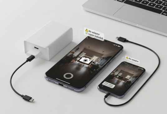電源アダプタは同梱されません。手持ちのUSB-C充電器で問題ない場合もあります。急速充電を活かしたいなら、33W以上のUSB-C PD対応を目安に。
