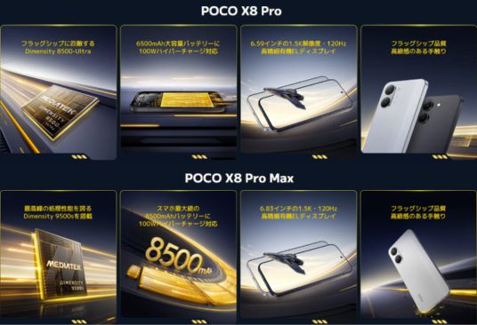 POCO X8 ProとX8 Pro Maxの違いを比較表で整理