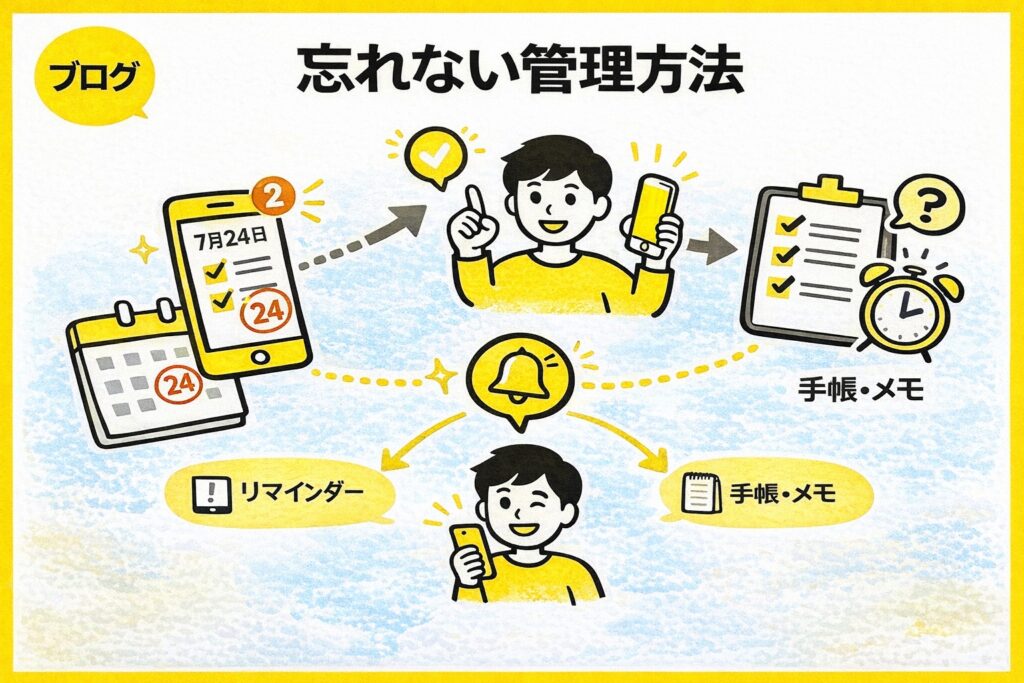 管理ツールはGoogleカレンダーでも、iPhoneのリマインダーでも構いません。大事なのは次の3点です。