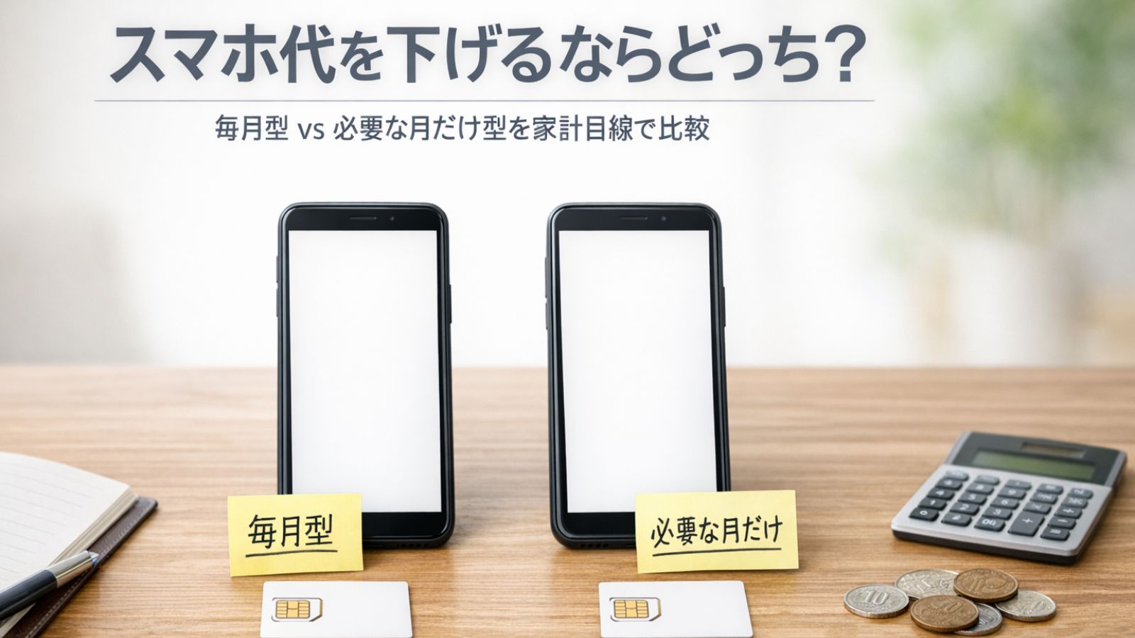この記事は、速度や電波の深掘りは最小限。 スマホ代を“固定費”として下げるために、違いを整理して、あなたの正解に着地させます。